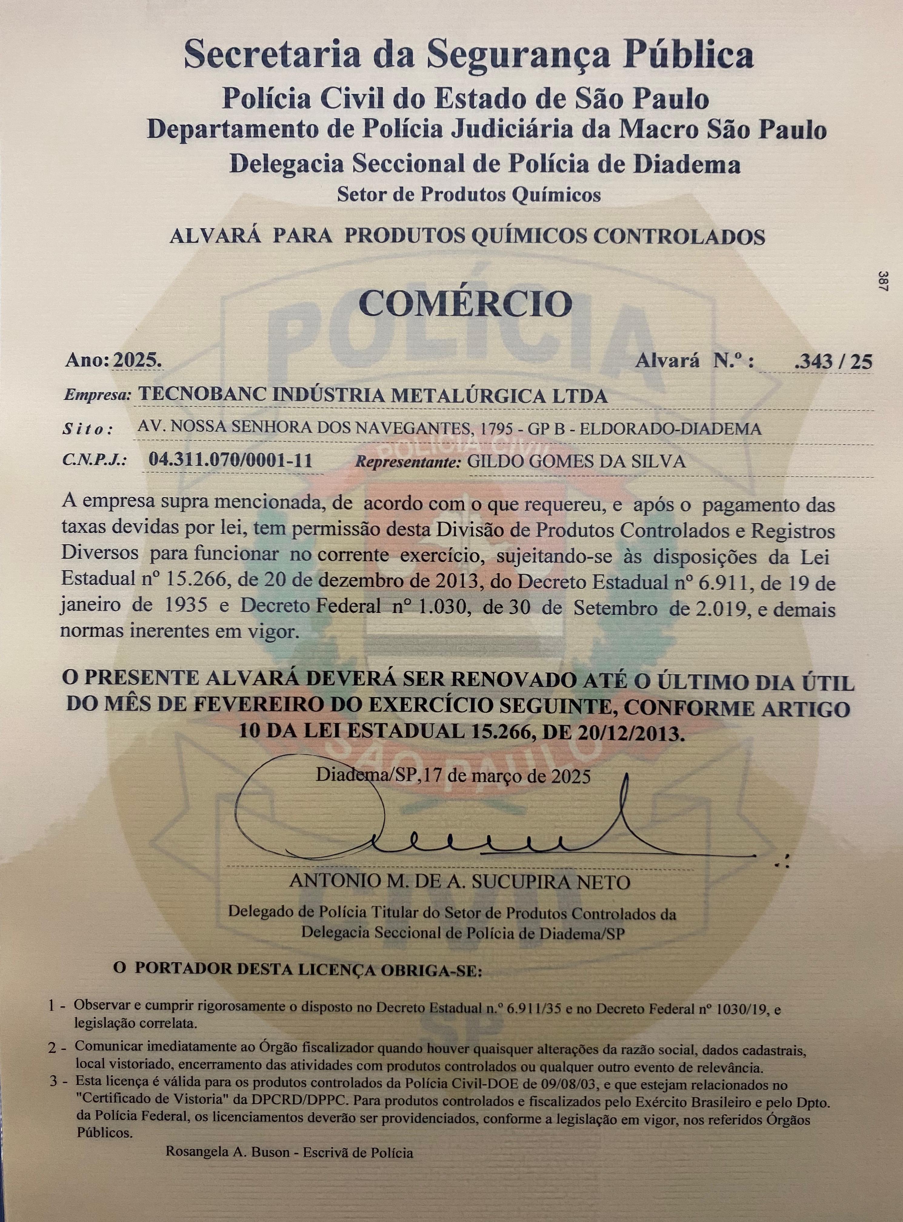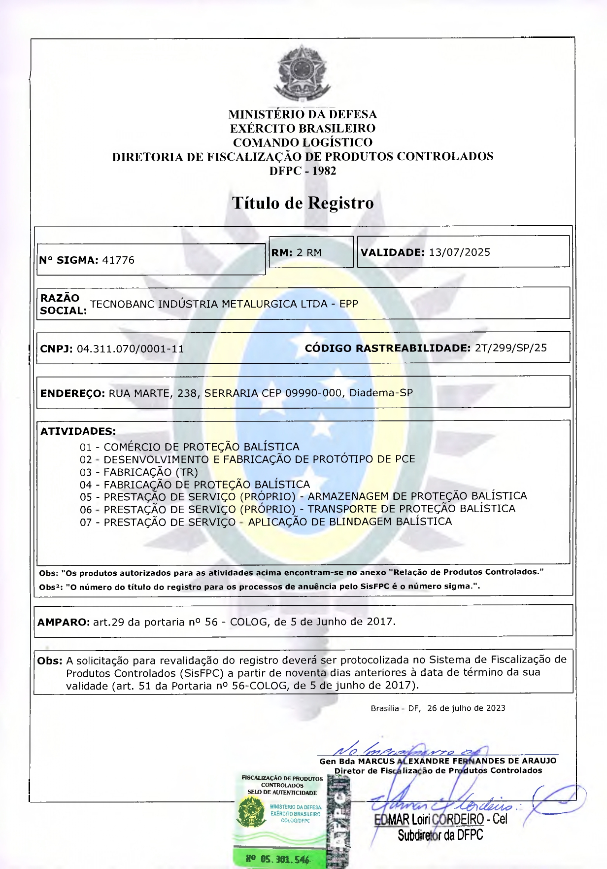 Empresa homologada pelo Exrcito Brasileiro e Polcil Civil